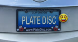 Show your star power with this Star Eyes Emoji Plate Disc printed in Yellow and Red. Plate Disc is a HIPS (High Impact Polystyrene) plastic that replaces a bumper sticker or advertising magnet. Plate Discs provide a clean way to communicate your message without damaging or scratching your vehicle. Most car bumpers are no longer made of metal which will not allow magnets to be placed on the car. Plate Disc will fit most license plate frames. Show your support to your favorite charities, sports teams, schools, future honor roll students, or just whatever you believe in. Your imagination is your playground. Made in the USA!